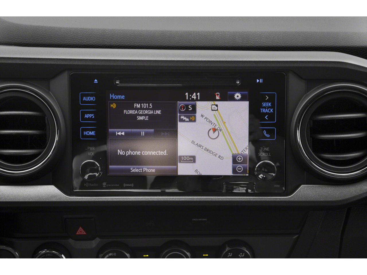 - Radio: Entune Premium w/AM/FM/CD/Nav/App Suite -inc: 6 speakers, 7" high-resolution touch-screen display w/split screen, auxiliary port, USB media port, Siri eyes free, advanced voice recognition, Bluetooth® hands-free phone capability, phone book access and music streaming, cache radio, HD Radio, HD predictive traffic and doppler weather overlay and SiriusXM satellite radio w/complimentary SiriusXM All Access 90-day trial subscription included, Entune App Suite, Destination Search, iHeartRadio, MovieTickets.com, OpenTable, Pandora, Yelp, Facebook Places and Slacker Radio