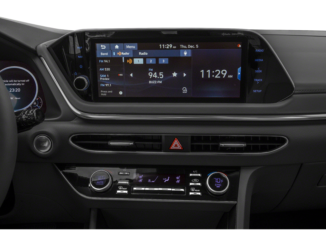 • Radio: AM/FM/MP3/HD/SiriusXM Display Audio w/Nav -inc: 10.25" color touchscreen, integrated Bluetooth®, Blue Link connected car system, Apple CarPlay, Android Auto, USB charge port and diversity antenna for navigation and premium audio