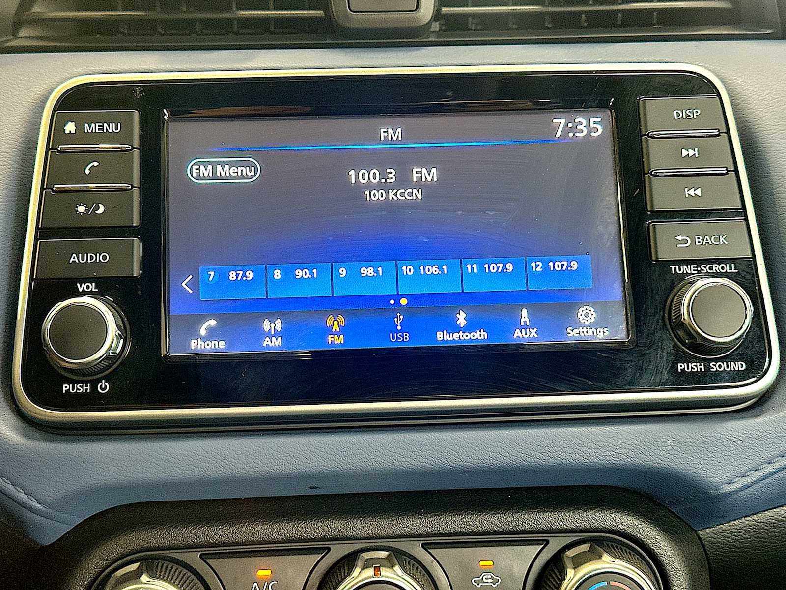 - Radio: AM/FM Audio System -inc: RDS, MP3, aux-in, 7" Advanced Drive-Assist Display, NissanConnect featuring Apple CarPlay and Android Auto, Bluetooth® hands-free phone system, streaming audio via Bluetooth®, interface for iPod and other compatible devices, hands-free text messaging assistant, Siri Eyes Free/Google Assistant voice recognition, 4 speakers, 12-volt DC power outlet and 3 USB ports (2-charge only)